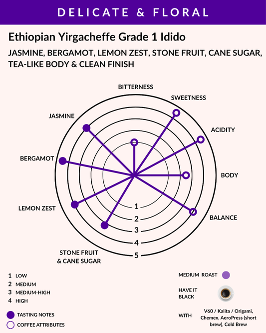 Ethiopian Yirgacheffe Grade 1 IdidoRegular price From Rs 960.00Regular priceUnit price perRs 1,200.00Sale price From Rs 960.00Sale