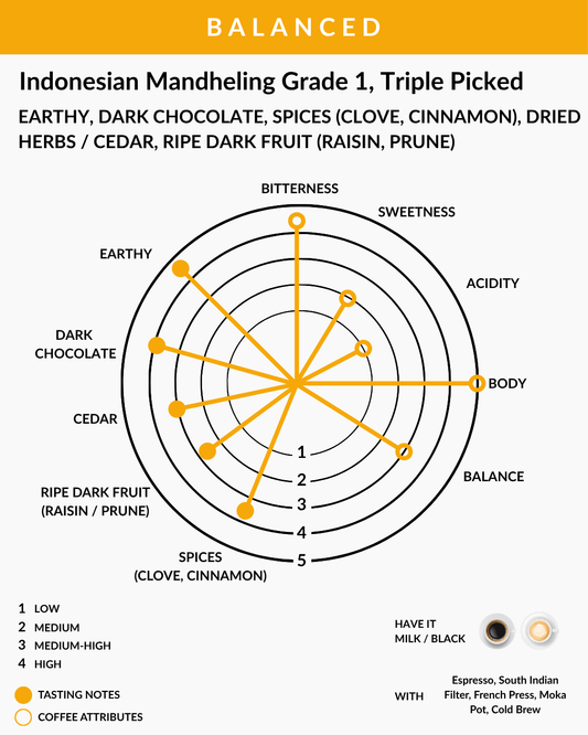 Whole Bean - Mandheling Grade 1 Indonesian Specialty Arabica - Pack of 250gRegular price Rs 1,600.00Regular priceUnit price perRs 2,000.00Sale price Rs 1,600.00Sale