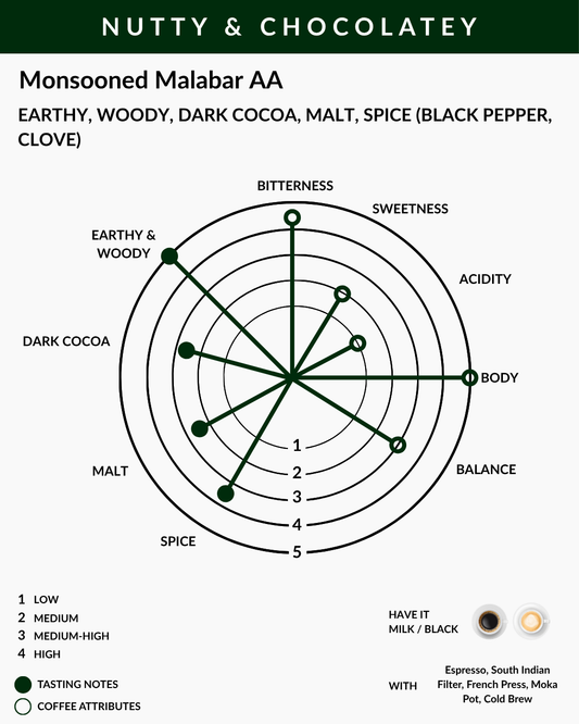 Whole Bean - Monsooned Malabar 'AA' Indian Specialty Arabica - Pack of 250g