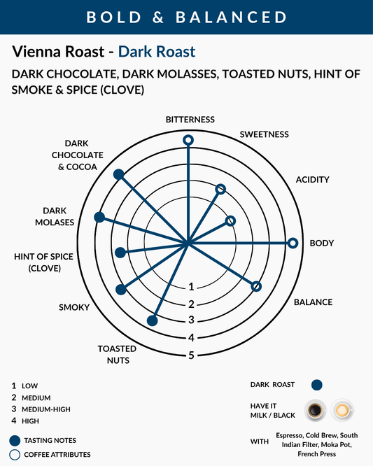 Whole Bean - Vienna Roast (Dark Roast) 100% Arabica - Pack of 250g