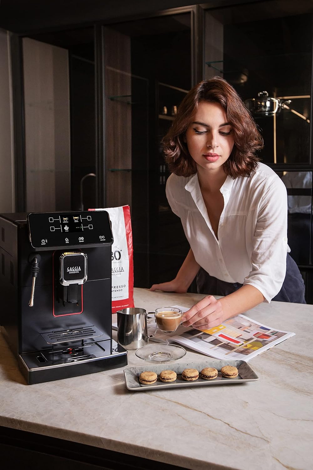 PROFESSIONAL STEAM WAND: Directly from the Gaggia tradition, the stainless steel steam wand is thought to make you relive, at home, the authentic barista rituals. Thanks to its shape, you can use different kinds of milk jugs and always have an impeccable milk froth. It also dispenses hot water for teas and infusions.