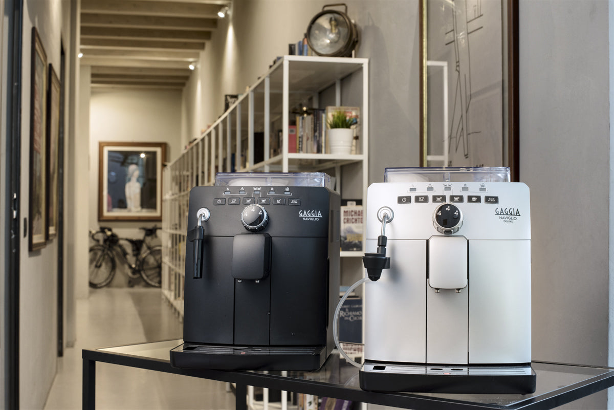 The Gaggia Naviglio Deluxe is a step up in convenience and style from the regular Naviglio, offering a silver plastic body and a cappuccinatore milk frothing device.