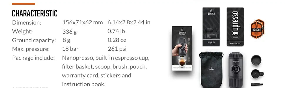 Great Accessories: The addition of the NS adaptor allows the Nanopresso to use Nespresso capsules to prepare espressos. You can enjoy your favourite nespresso original capsules or compatibles even while travelling.